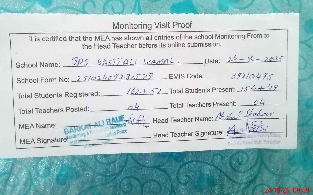 | EMIS Code: 39210495 | Name of School: GPS BASTI ALI KAMAL | |||