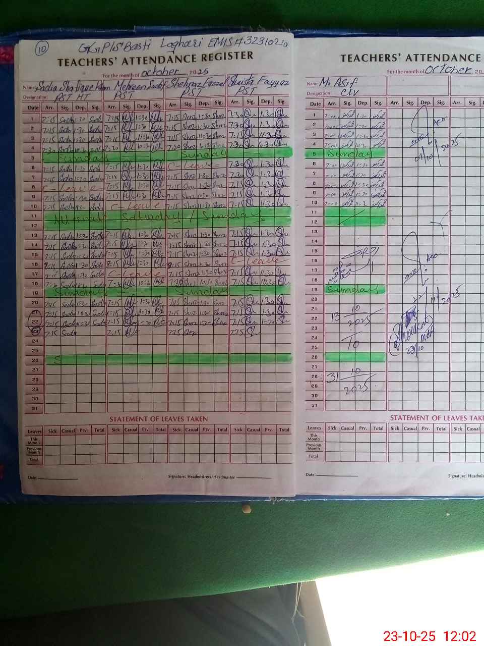 | Name: ME**** SD**** Designation: (School Headmaster's/Headmistress's) PST Phone/Cell Number: 03**** |