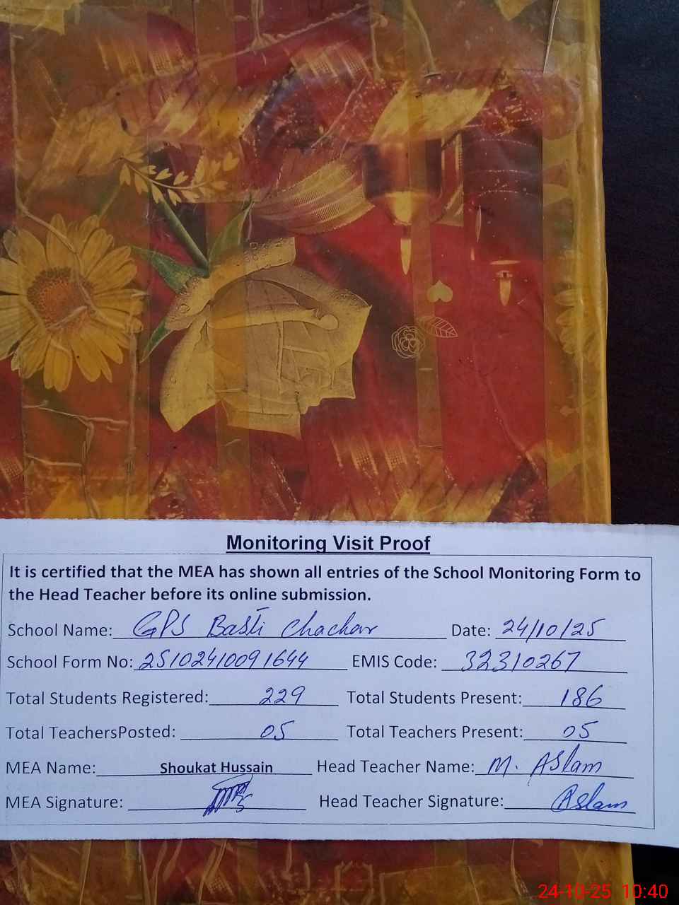 | EMIS Code: 32310267 | Name of School: GPS BASTI CHACHAR | |||