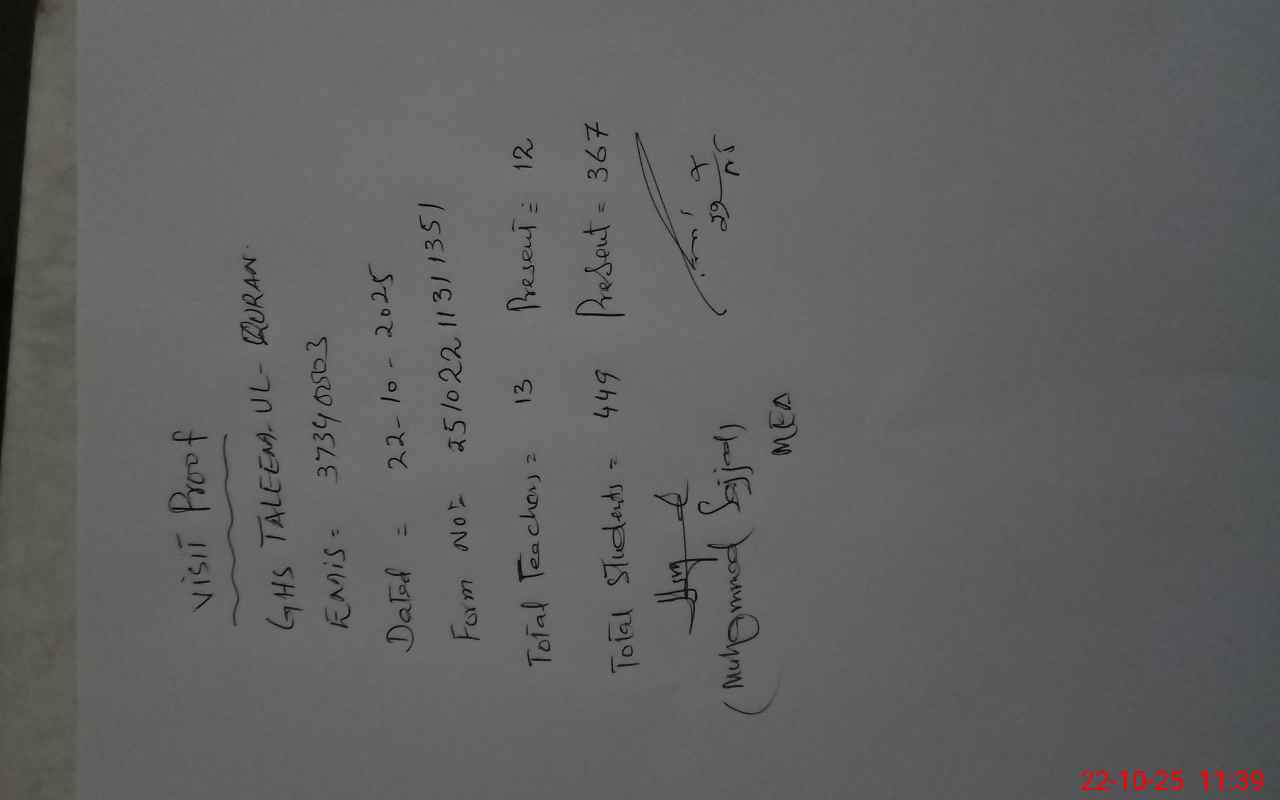 | EMIS Code: 37340003 | Name of School: GHS TALEEM-UL-QURAN TAXILA | |||