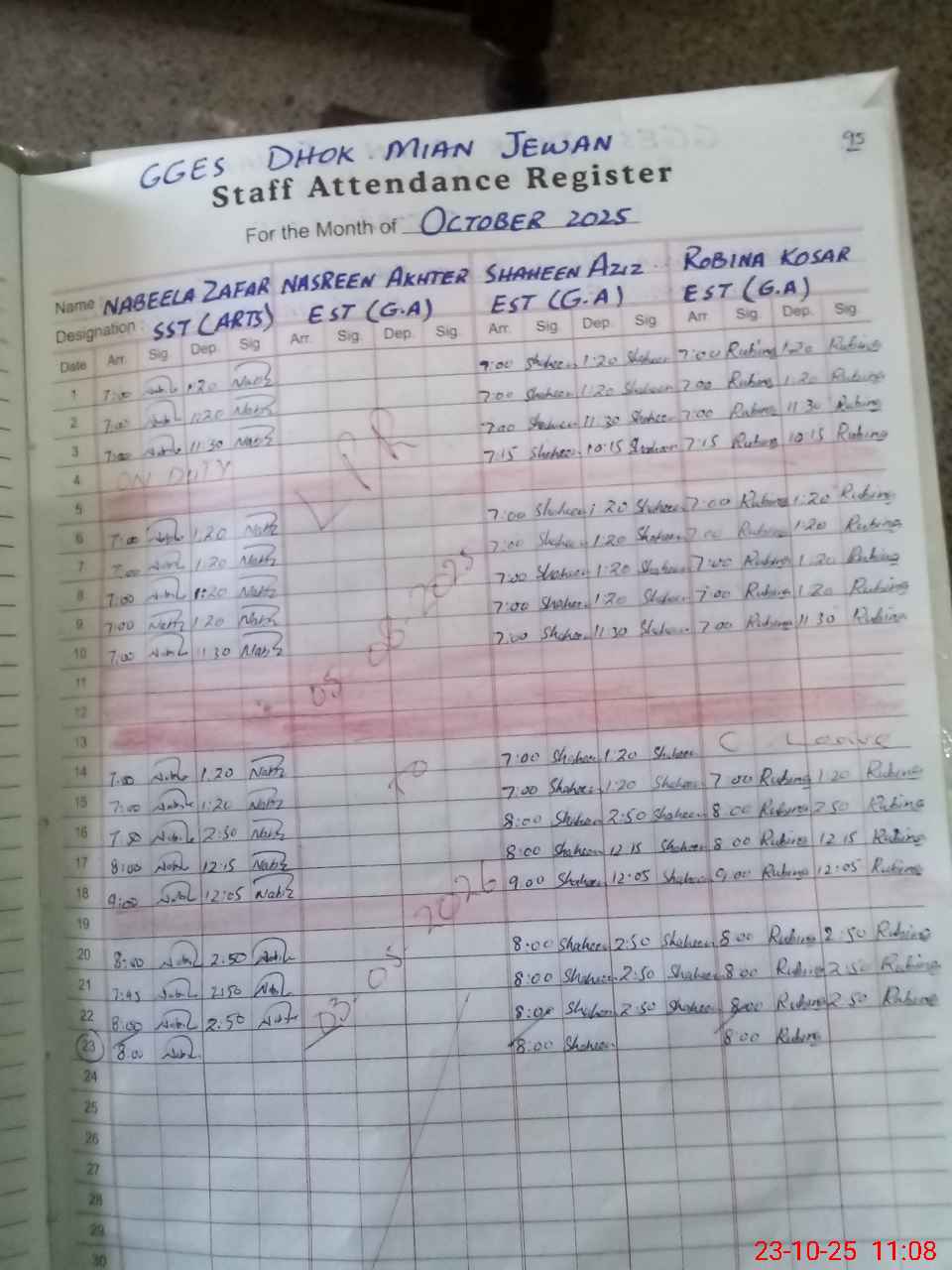 | No. of Students Present - Female | 8 | 0 | 7 | 3 | 4 | 7 | 5 | 11 | 17 | 25 | 26 | 113 | ||||