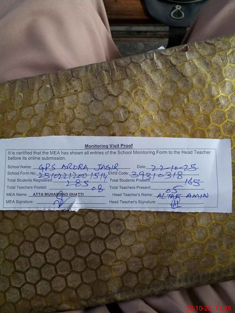 | EMIS Code: 39310318 | Name of School: GPS ARORA JAGIR | |||
