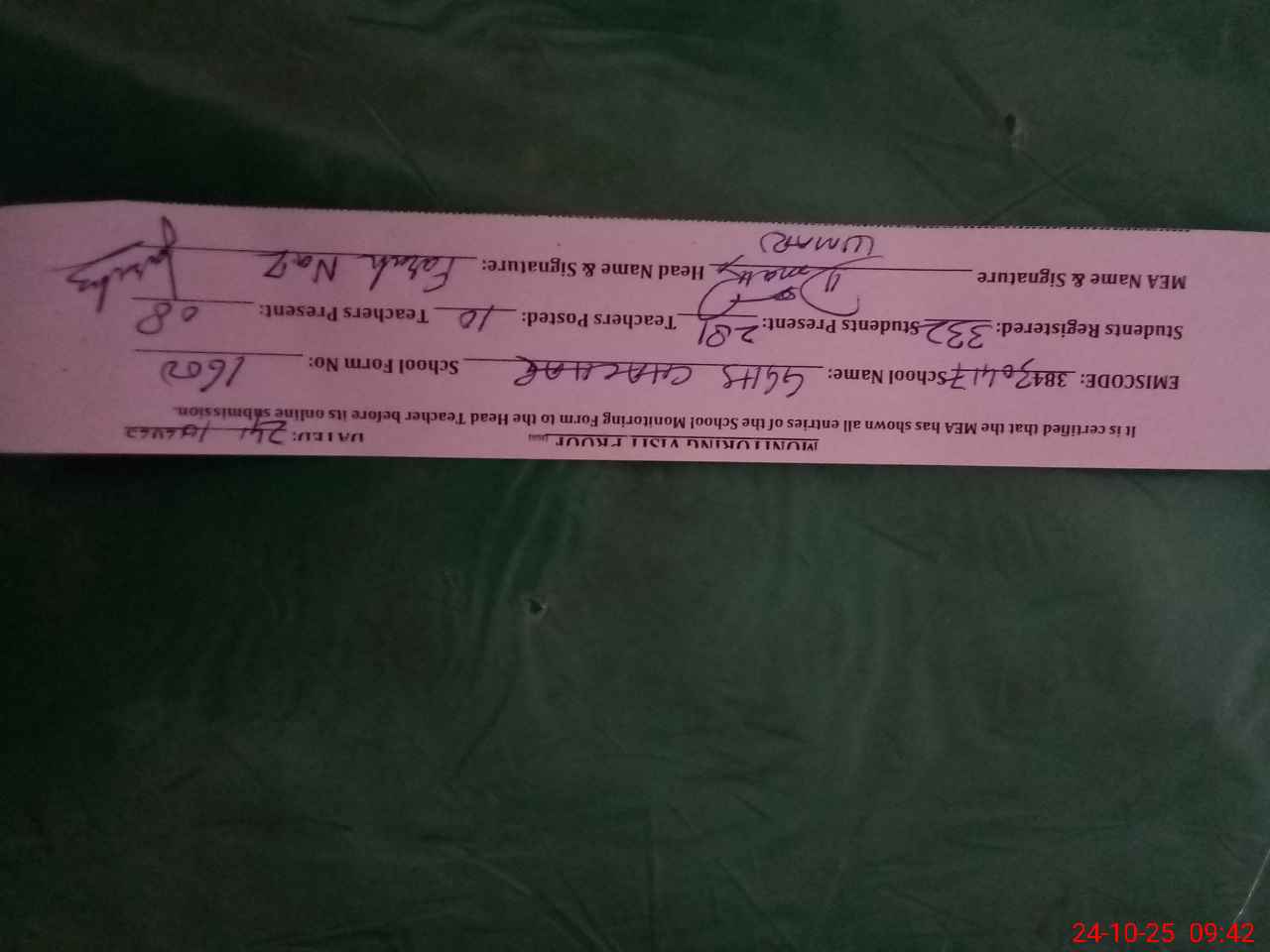 | Certified that this School was Inspected by the Undersigned MEA/DMO Today and the Information Stated Above is as Per Record. | |||||