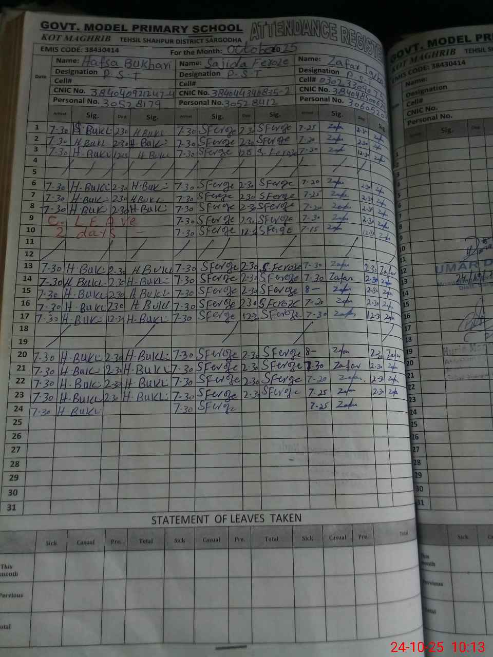 | Name: Ha**** Bu**** Designation: (School Headmaster's/Headmistress's) PST Phone/Cell Number: 03**** |