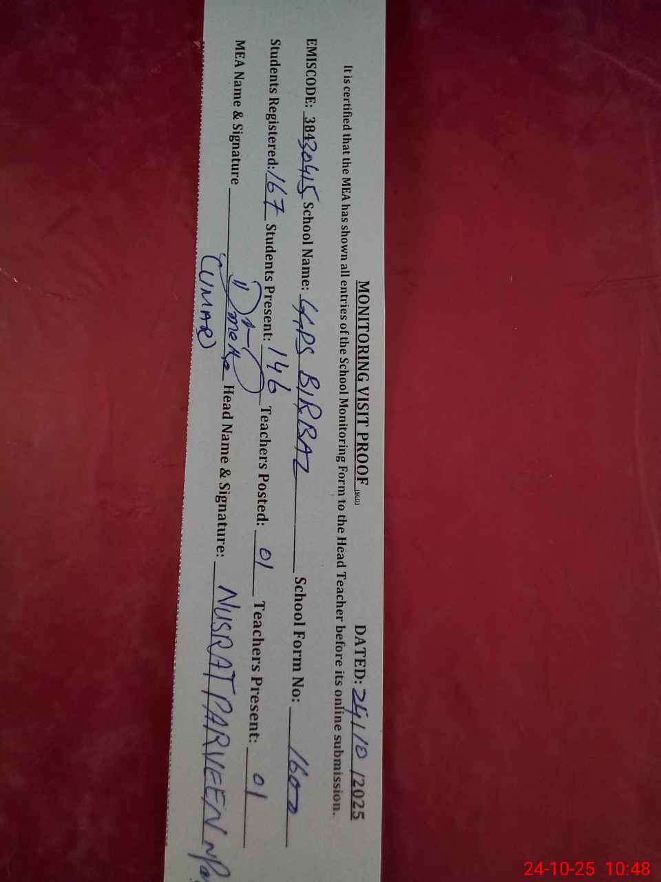 | EMIS Code: 38430415 | Name of School: GGPS BIRBAL | |||