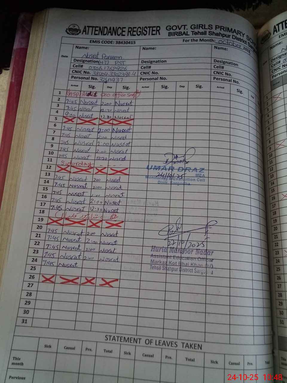 | Name: NU**** PA**** Designation: (School Headmaster's/Headmistress's) PST Phone/Cell Number: 03**** |