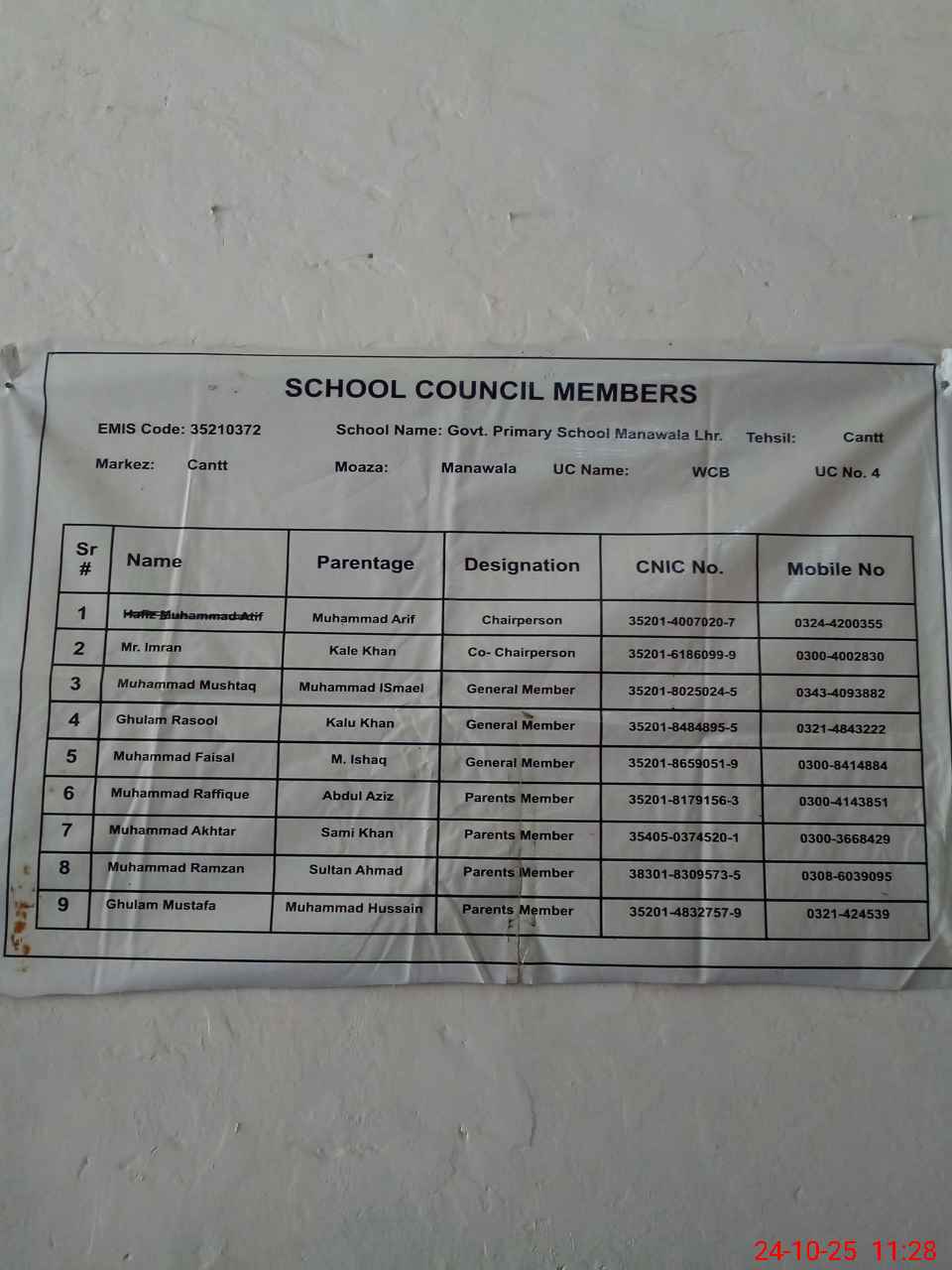 | EMIS Code: 35210372 | Name of School: GPS MANAWALA LHR CANTT | |||