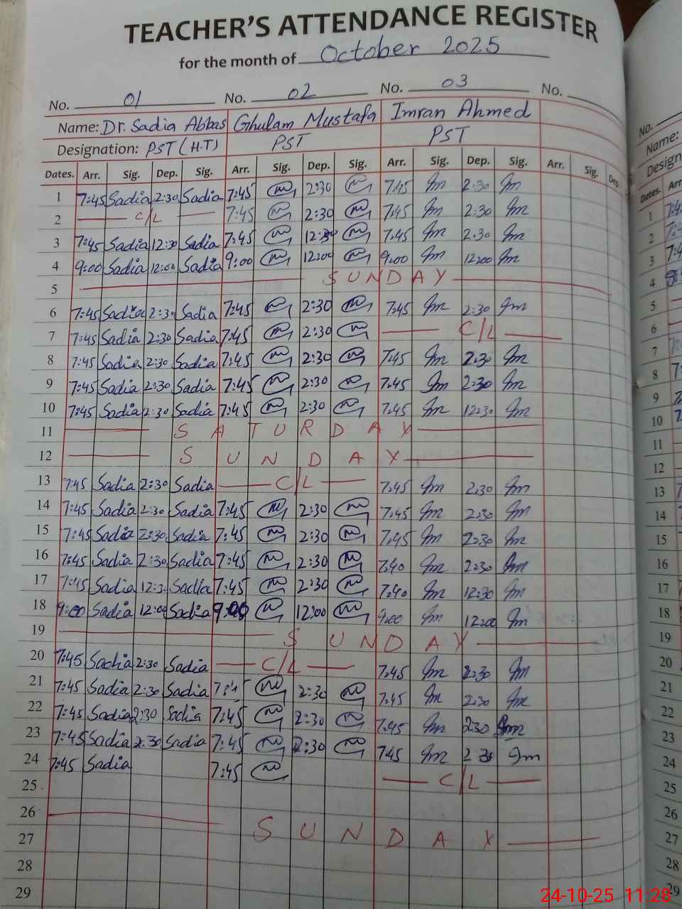 | CNIC | Full Name | Designation | R/C | Absence During Last Calender Month |