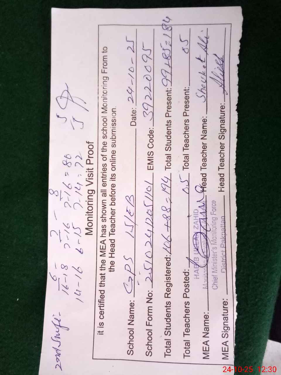 | Name: SH**** AL**** Designation: (School Headmaster's/Headmistress's) PST Phone/Cell Number: 03**** |