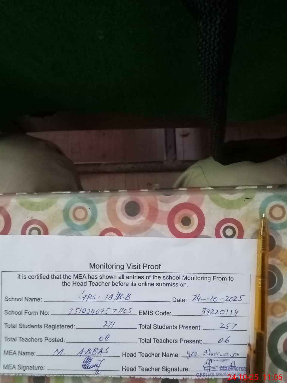 | EMIS Code: 39220154 | Name of School: GPS CHAK NO. 18 KB | |||