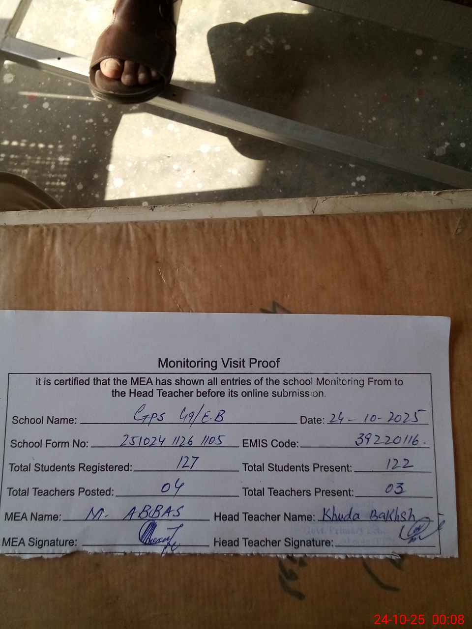 | EMIS Code: 39220116 | Name of School: GPS 49 EB | |||