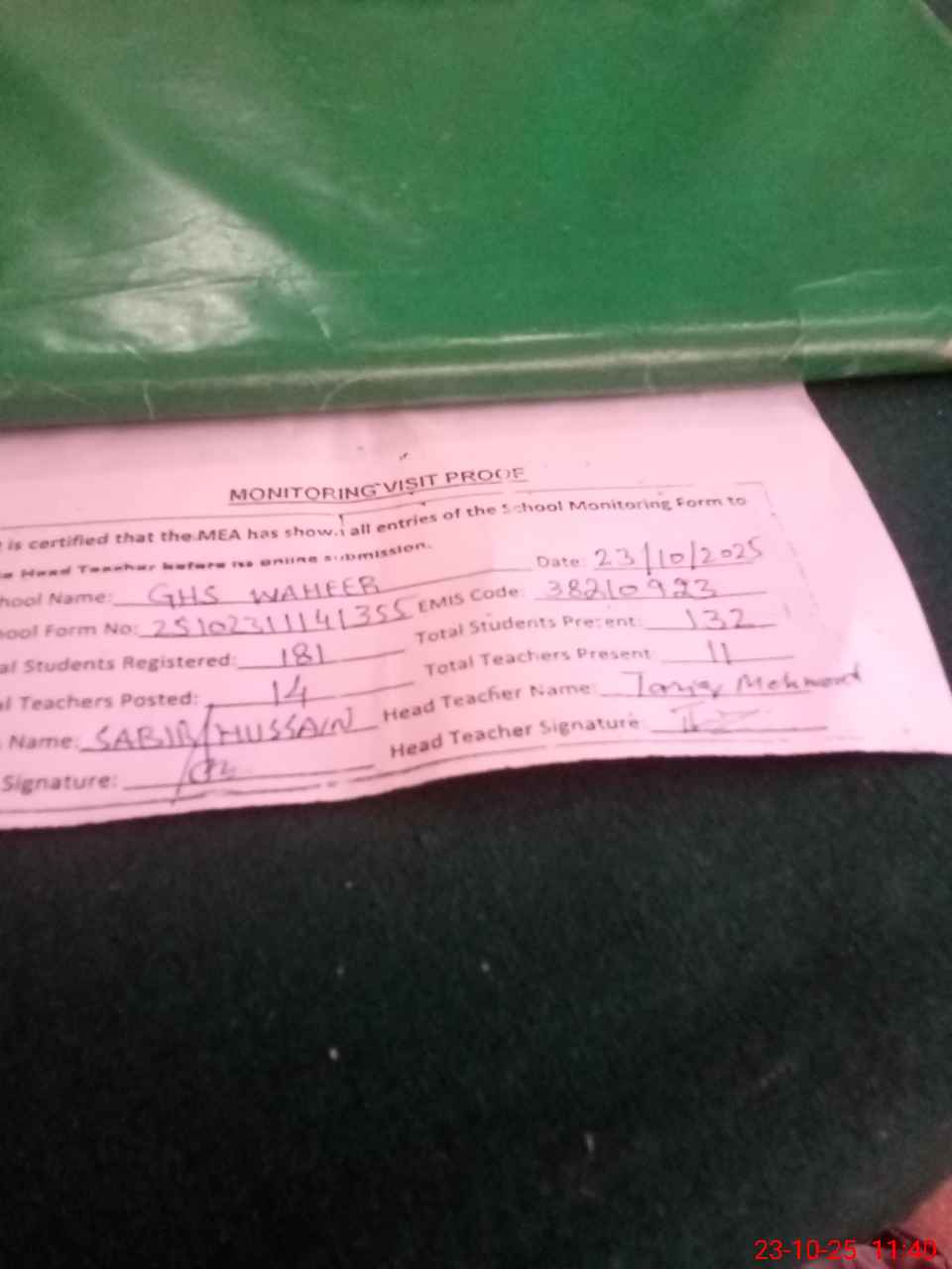 | EMIS Code: 38210923 | Name of School: GHS WAHEER | |||