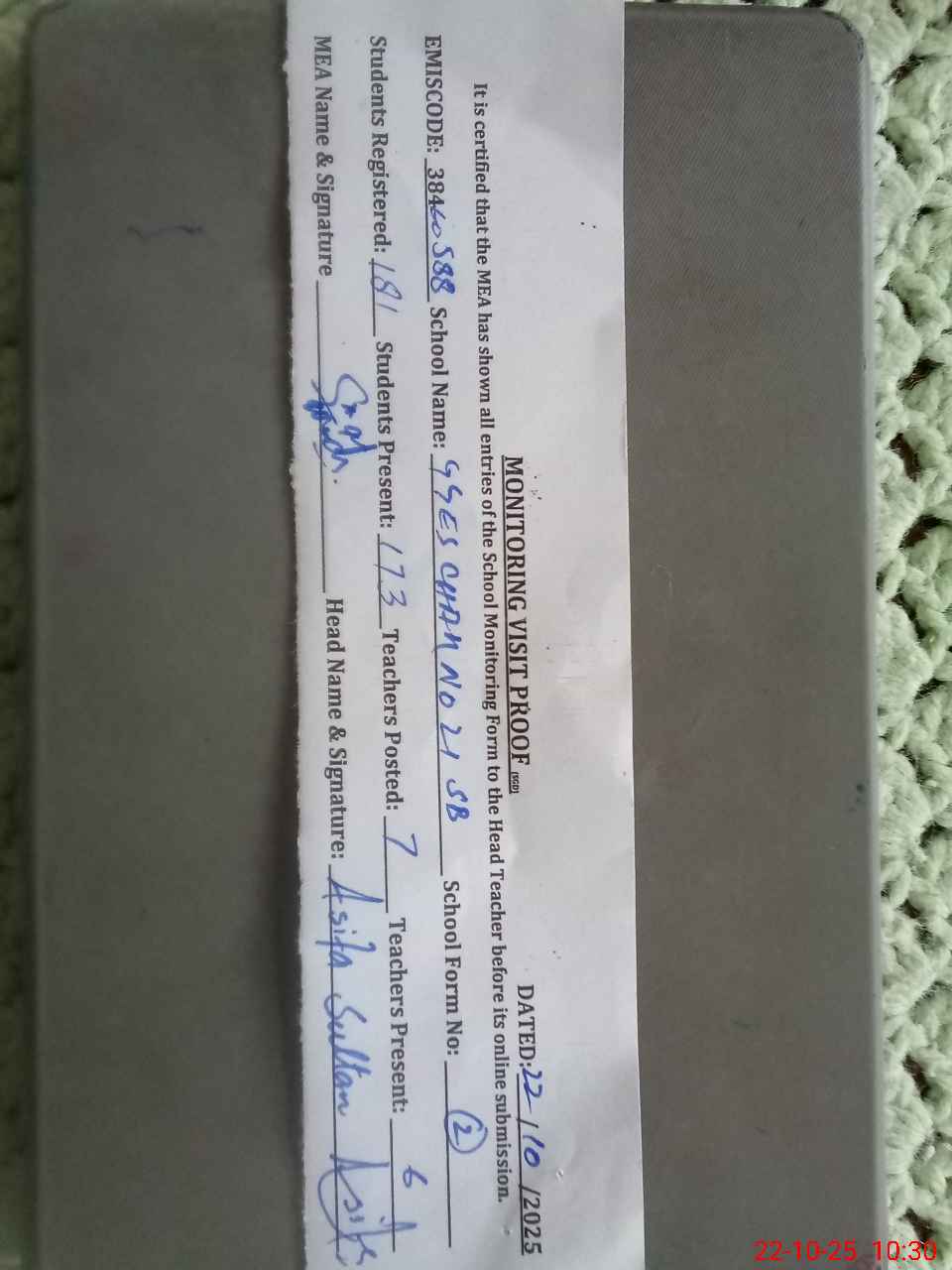 | Certified that this School was Inspected by the Undersigned MEA/DMO Today and the Information Stated Above is as Per Record. | |||||