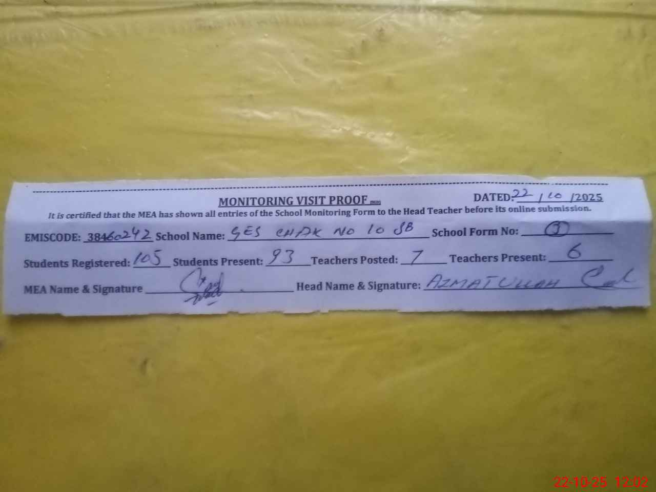| EMIS Code: 38460242 | Name of School: GES CHAK NO.10 SB | |||