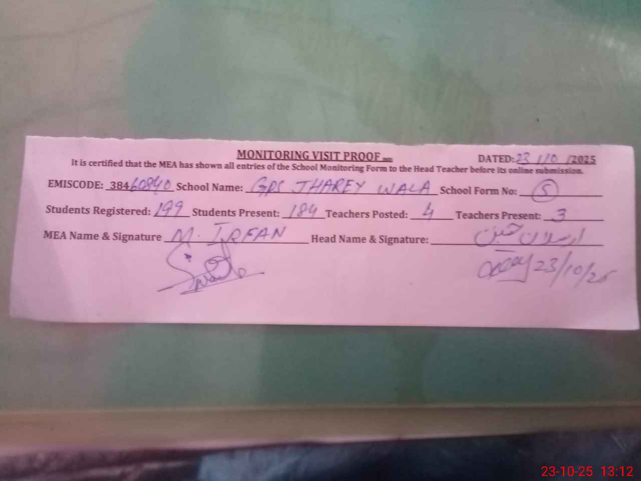 | EMIS Code: 38460840 | Name of School: GPS JHAREY WALA | |||