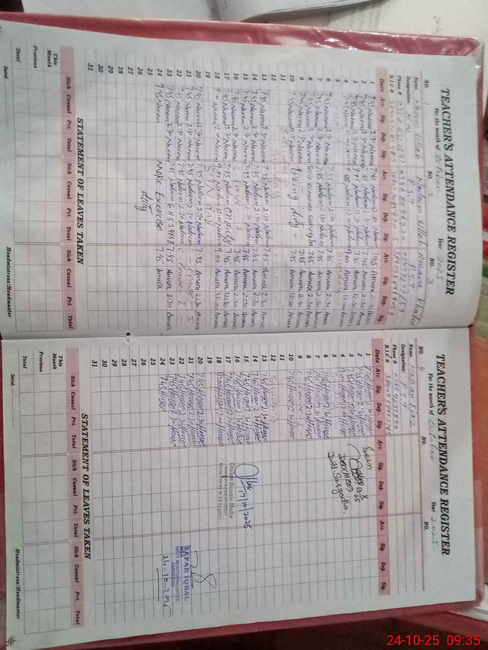 | Name: NA**** UL**** Designation: (School Headmaster's/Headmistress's) PTC/JV Phone/Cell Number: 03**** |