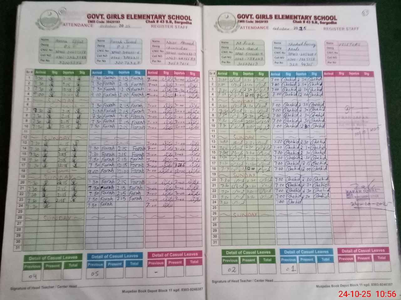| CNIC | Full Name | Designation | R/C | Absence during last cal. month |