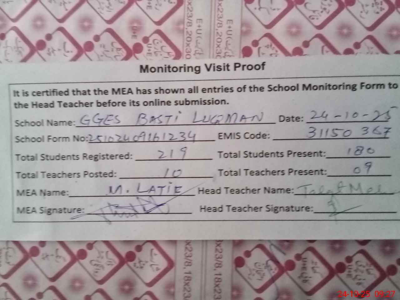 | EMIS Code: 31150367 | Name of School: GGES BASTI LUQMAN | |||