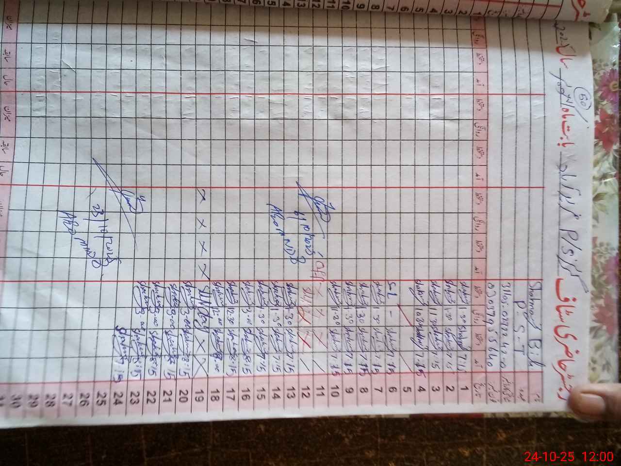 | CNIC | Full Name | Designation | R/C | Absence during last cal. month |