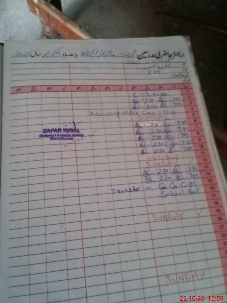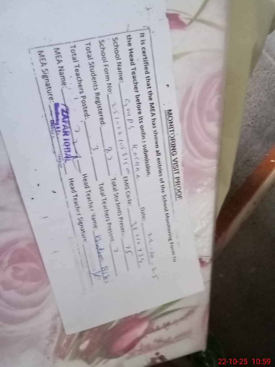 | Name: Kh**** Bi**** Designation: (School Headmaster's/Headmistress's) PST Phone/Cell Number: 03**** |