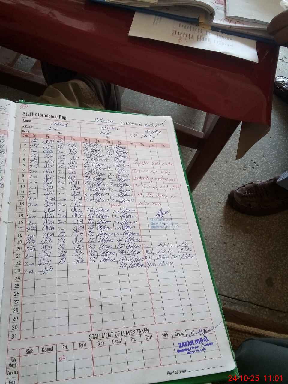 | CNIC | Full Name | Designation | R/C | Absence during last cal. month |