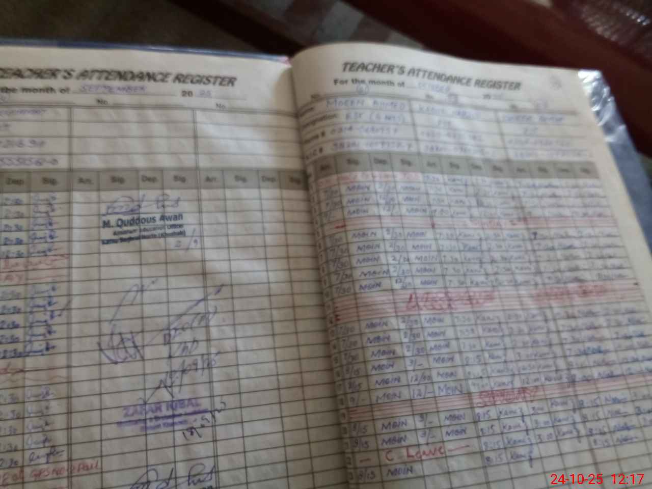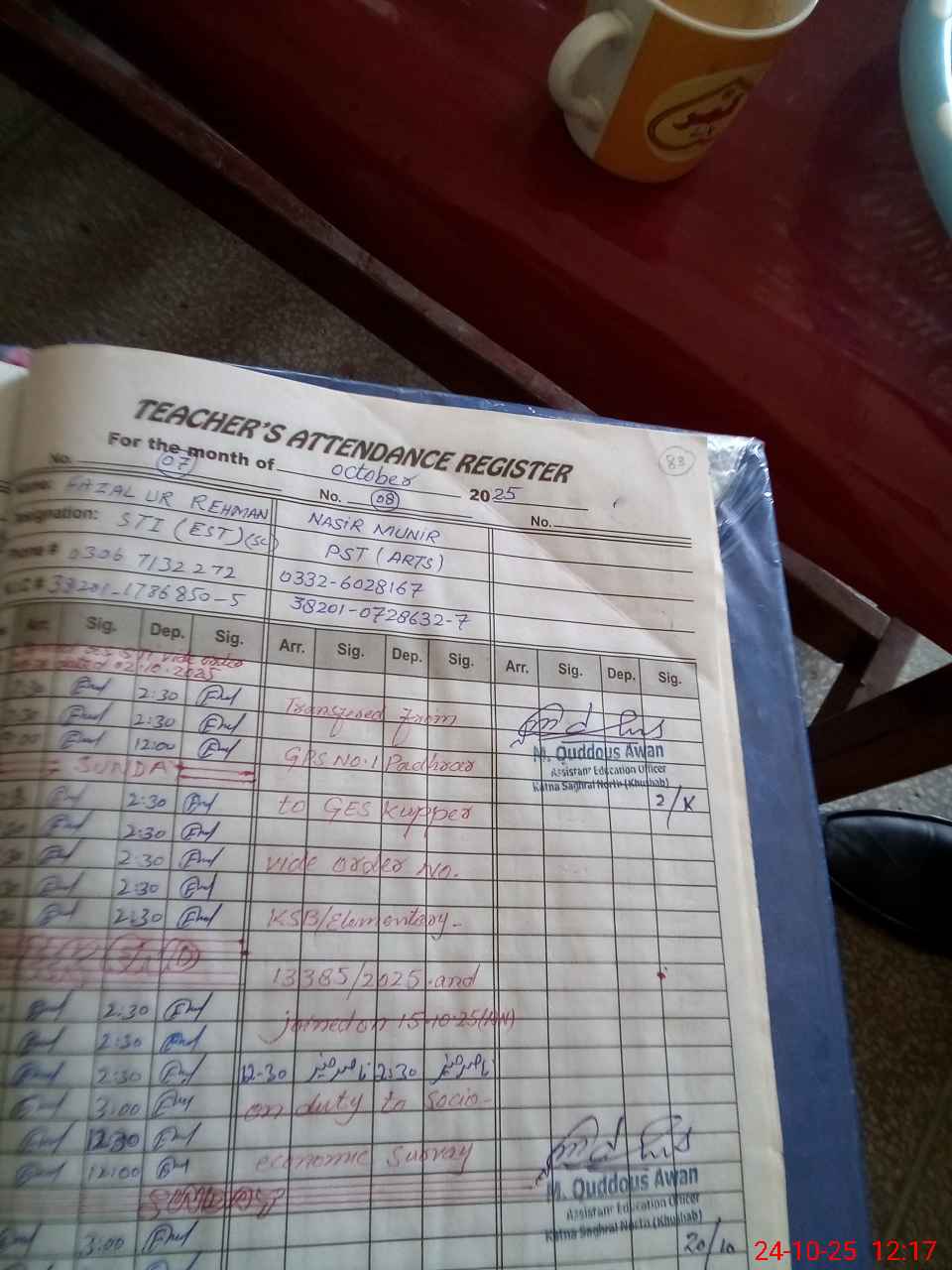 | CNIC | Full Name | Designation | R/C | Absence during last cal. month |
