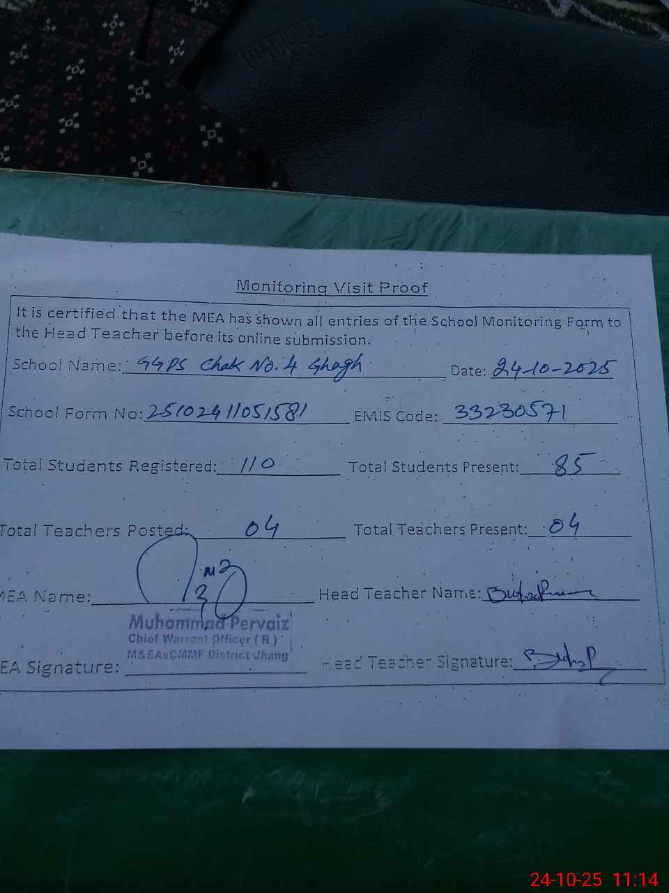 | EMIS Code: 33230571 | Name of School: GGPS CHAK NO 4 GHAGH | |||