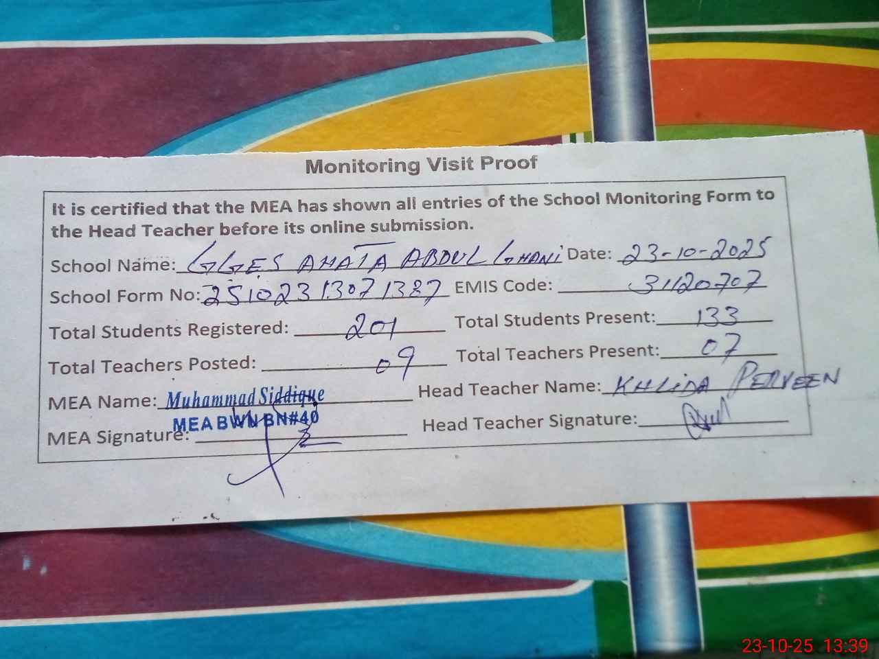 | EMIS Code: 31120707 | Name of School: GGES AHATA ABDUL GHANI | |||