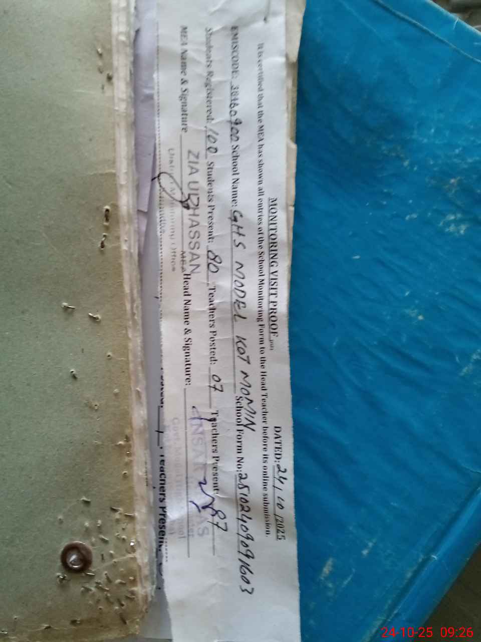 | EMIS Code: 38460900 | Name of School: GHS MODEL KOT MOMIN | |||