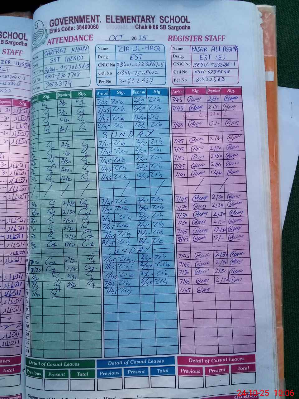 | CNIC | Full Name | Designation | R/C | Absence during last cal. month |
