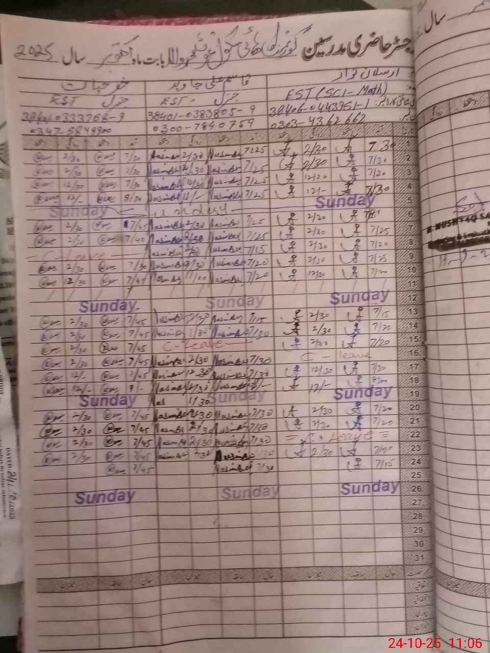 | Name: AR**** NA**** Designation: (School Headmaster's/Headmistress's) EST INCHARGE HEADMASTER Phone/Cell Number: 03**** |