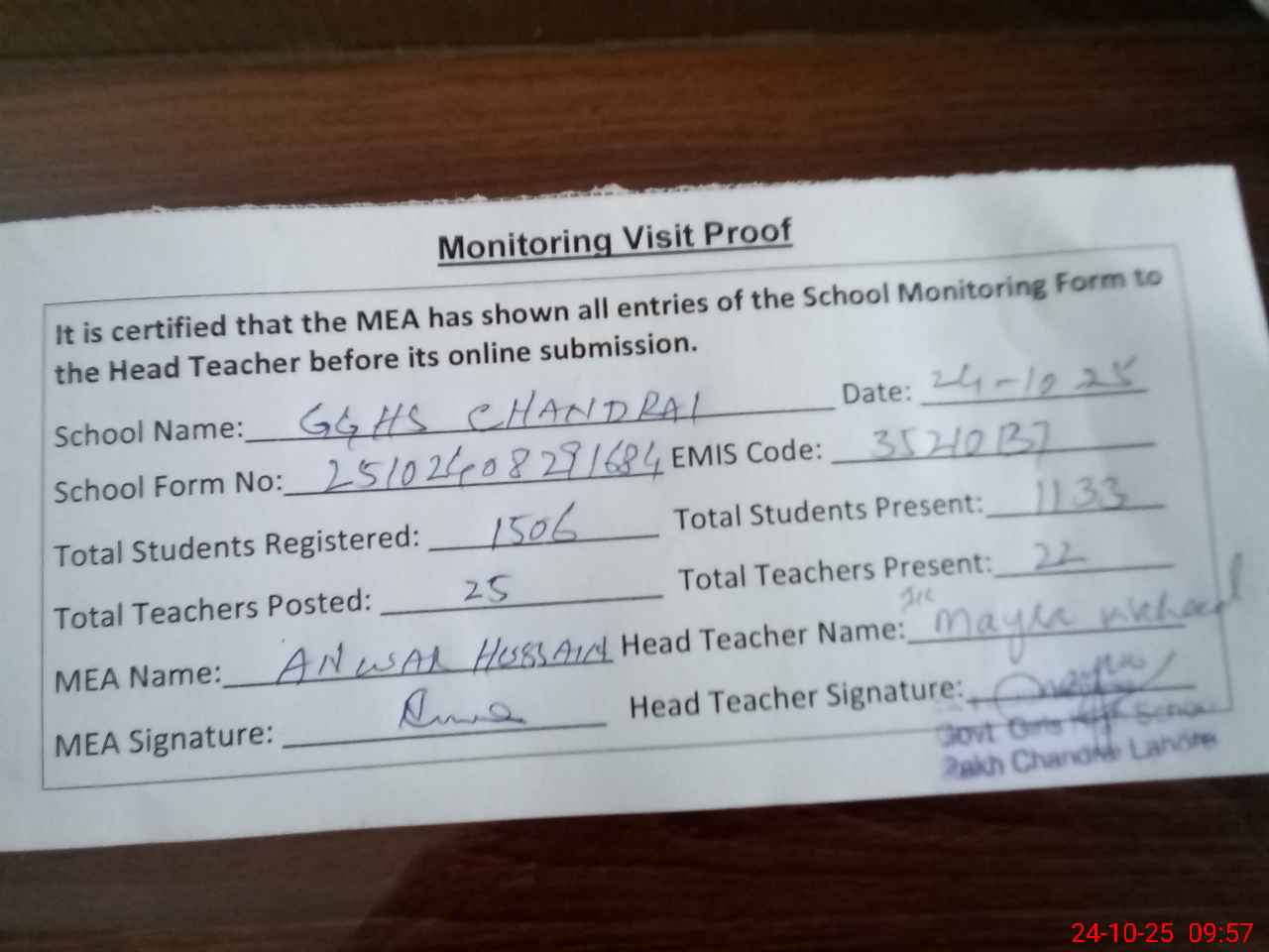 | EMIS Code: 35210137 | Name of School: GGHS CHANDRAI | |||