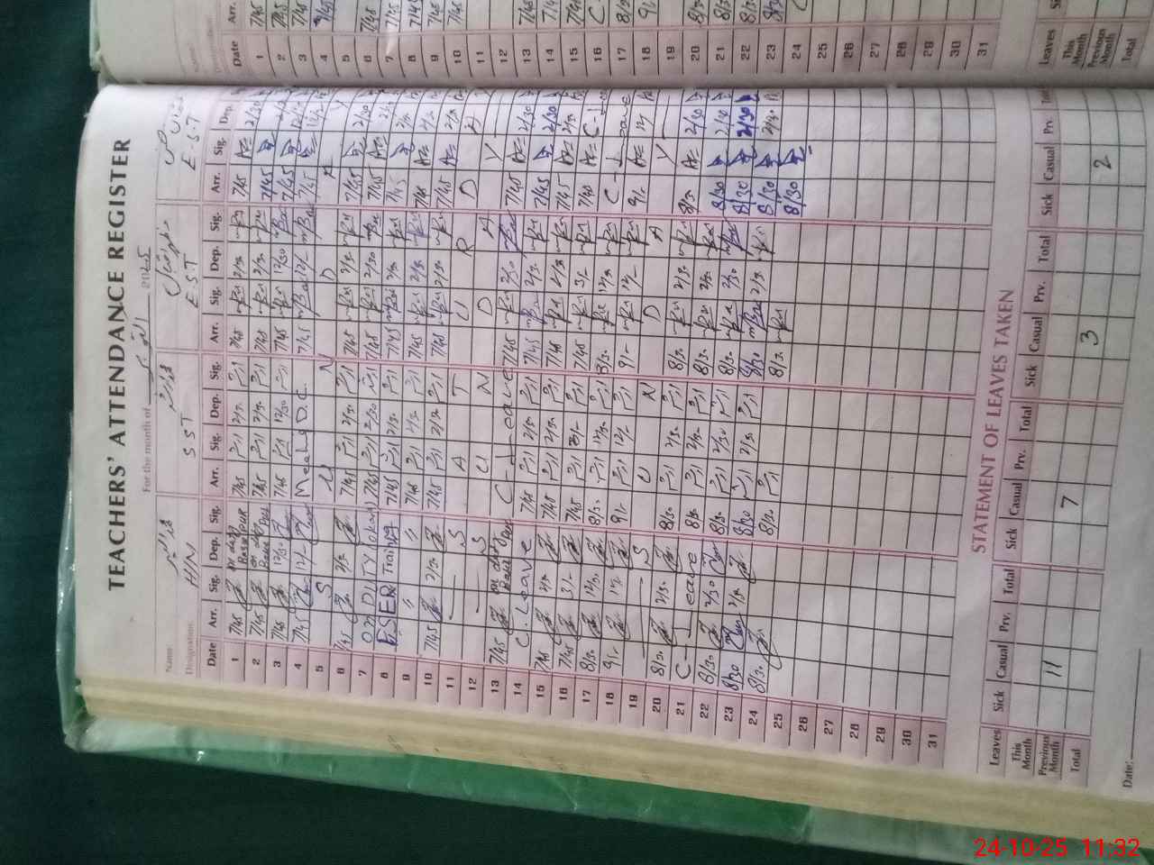| Leave | Duty | Absent | Maternity | Medical | Ex- Pak |