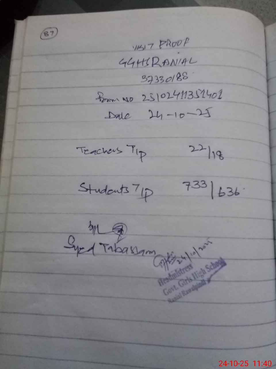 | EMIS Code: 37330188 | Name of School: GGHS RANIAL | |||