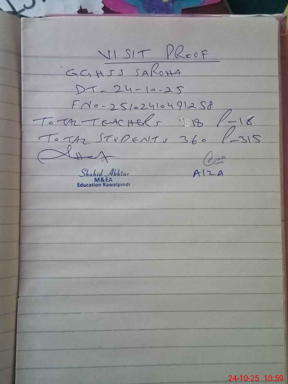 | Attendance Register | Head Teacher | MEA with School | Visit Proof |