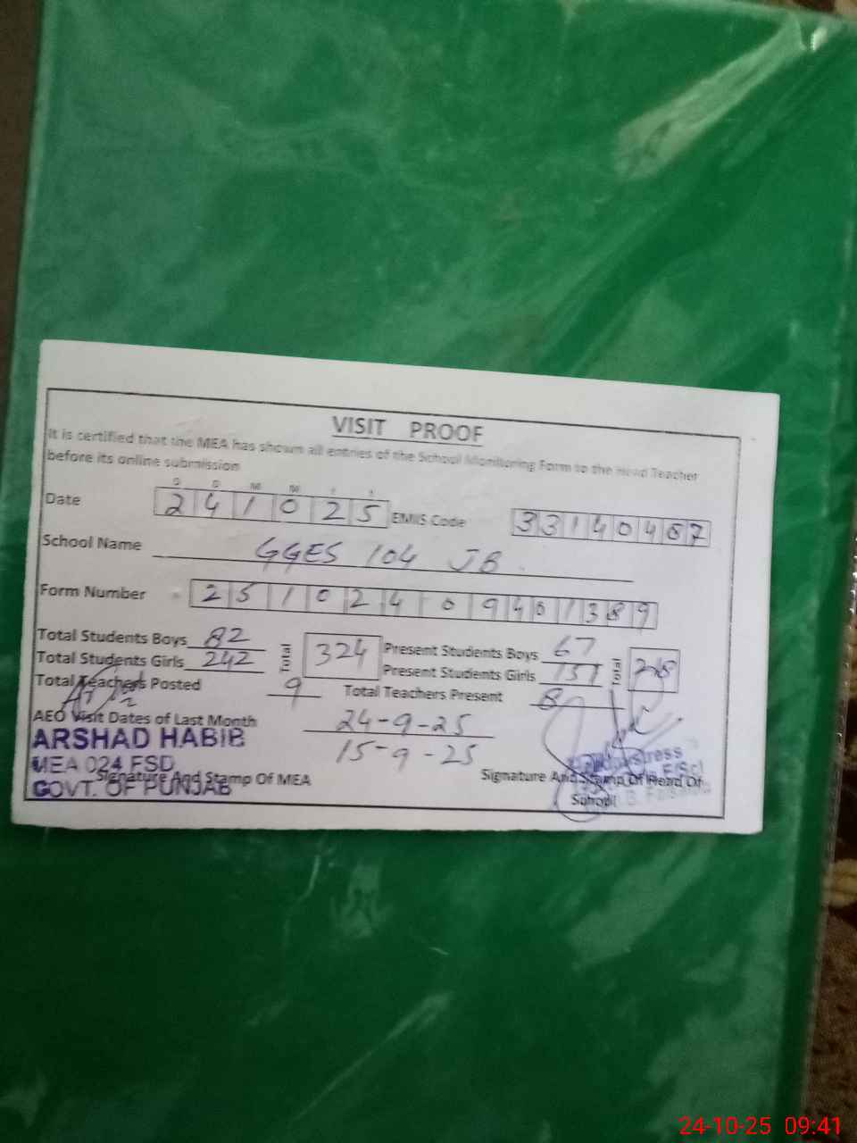 | EMIS Code: 33140487 | Name of School: GGES CHAK 104 JB HER MOAY | |||