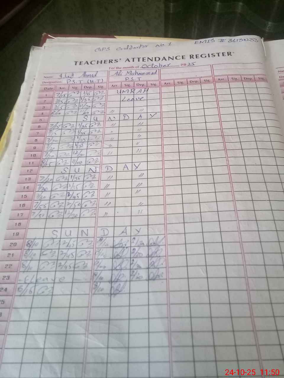 | Name: Ij**** Ah**** Designation: (School Headmaster's/Headmistress's) PST Phone/Cell Number: 03**** |