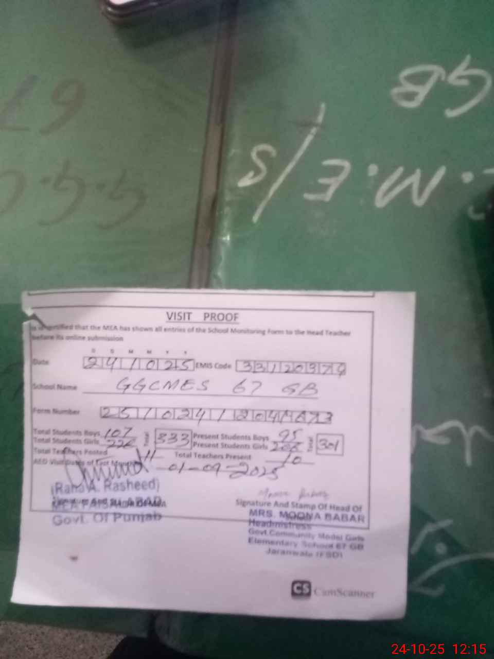 | EMIS Code: 33120374 | Name of School: GGCMES CHAK 67 GB JARANWALA | |||
