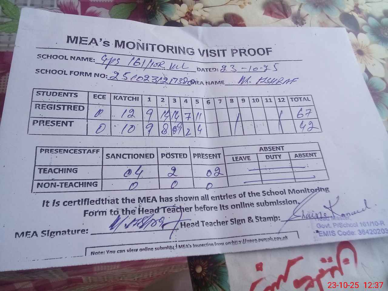 | EMIS Code: 36420203 | Name of School: GPS 161/10-R, KHANEWAL | |||