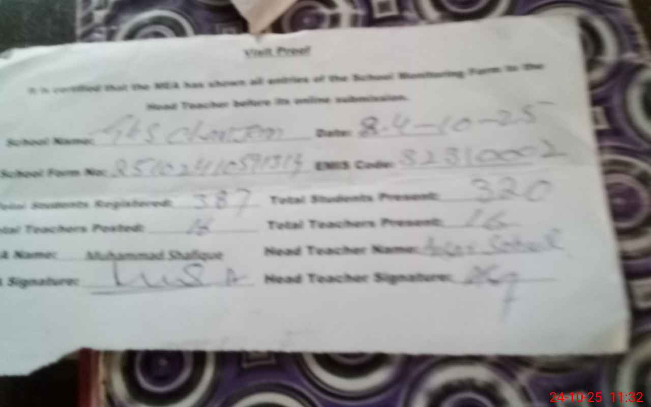 | Certified that this School was Inspected by the Undersigned MEA/DMO Today and the Information Stated Above is as Per Record. | |||||
