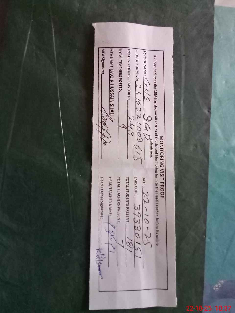 | EMIS Code: 39330151 | Name of School: GGHS CHAK NO.9/GD | |||