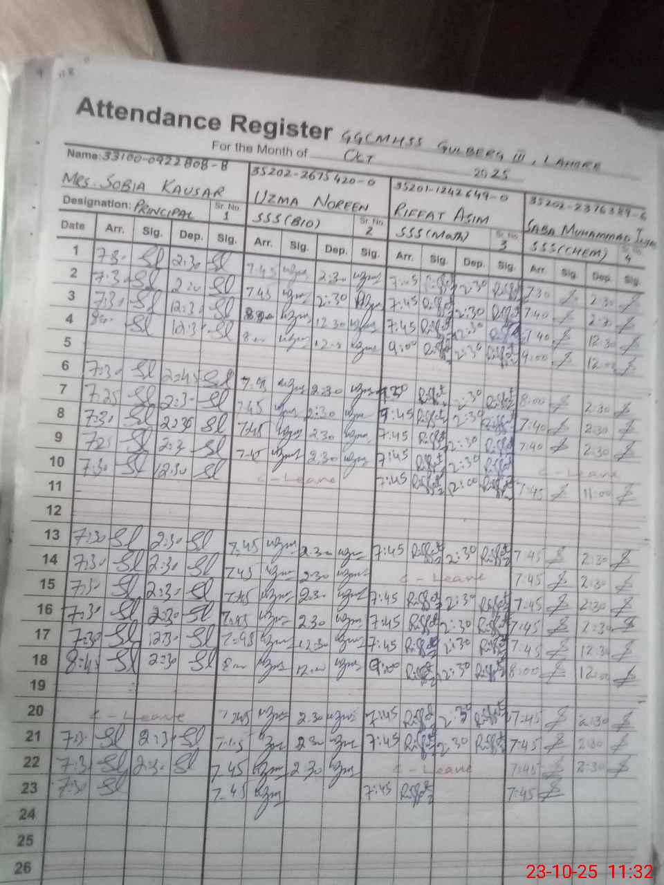 | 35**** | Fa**** Mu**** | Regular | 2 | 0 | 0 | 0 | 0 | 0 | 0 | 0 | 2 | Absent (Un-Authorized) | |