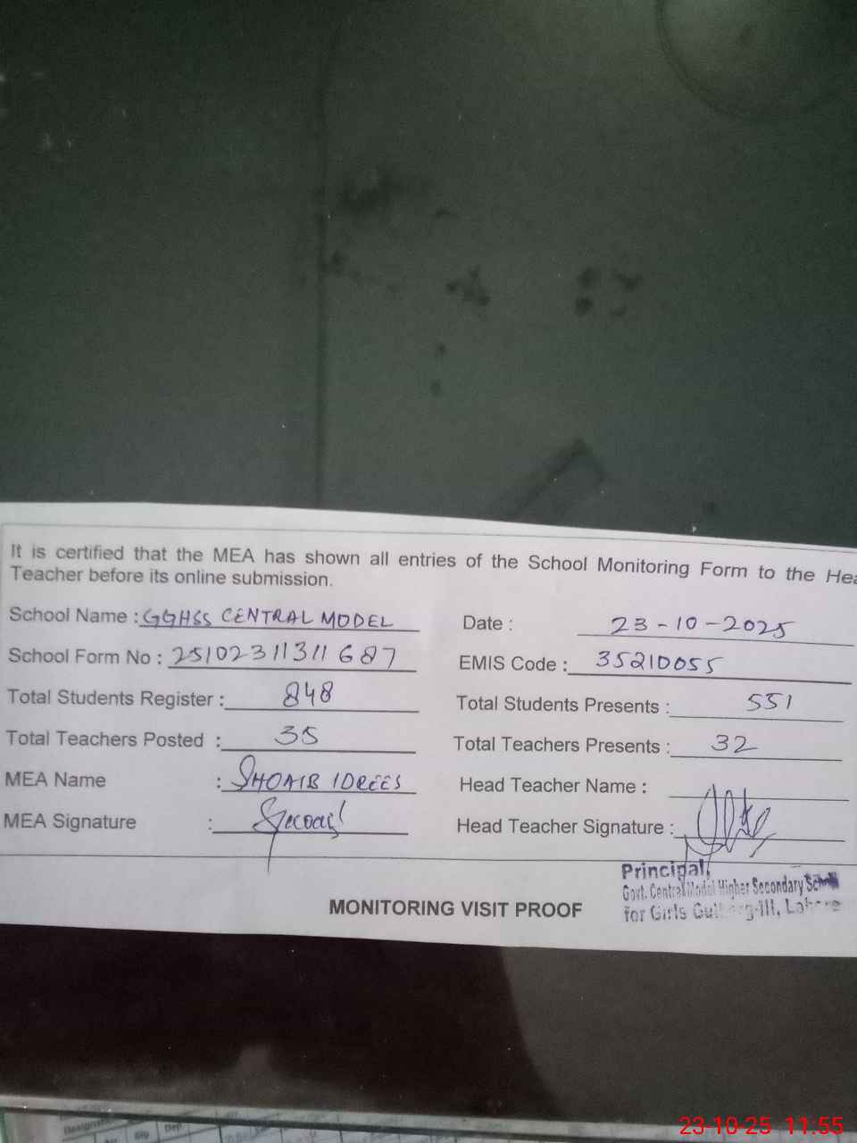 | EMIS Code: 35210055 | Name of School: GGHSS CENTRAL MODEL GULBERG-III | |||