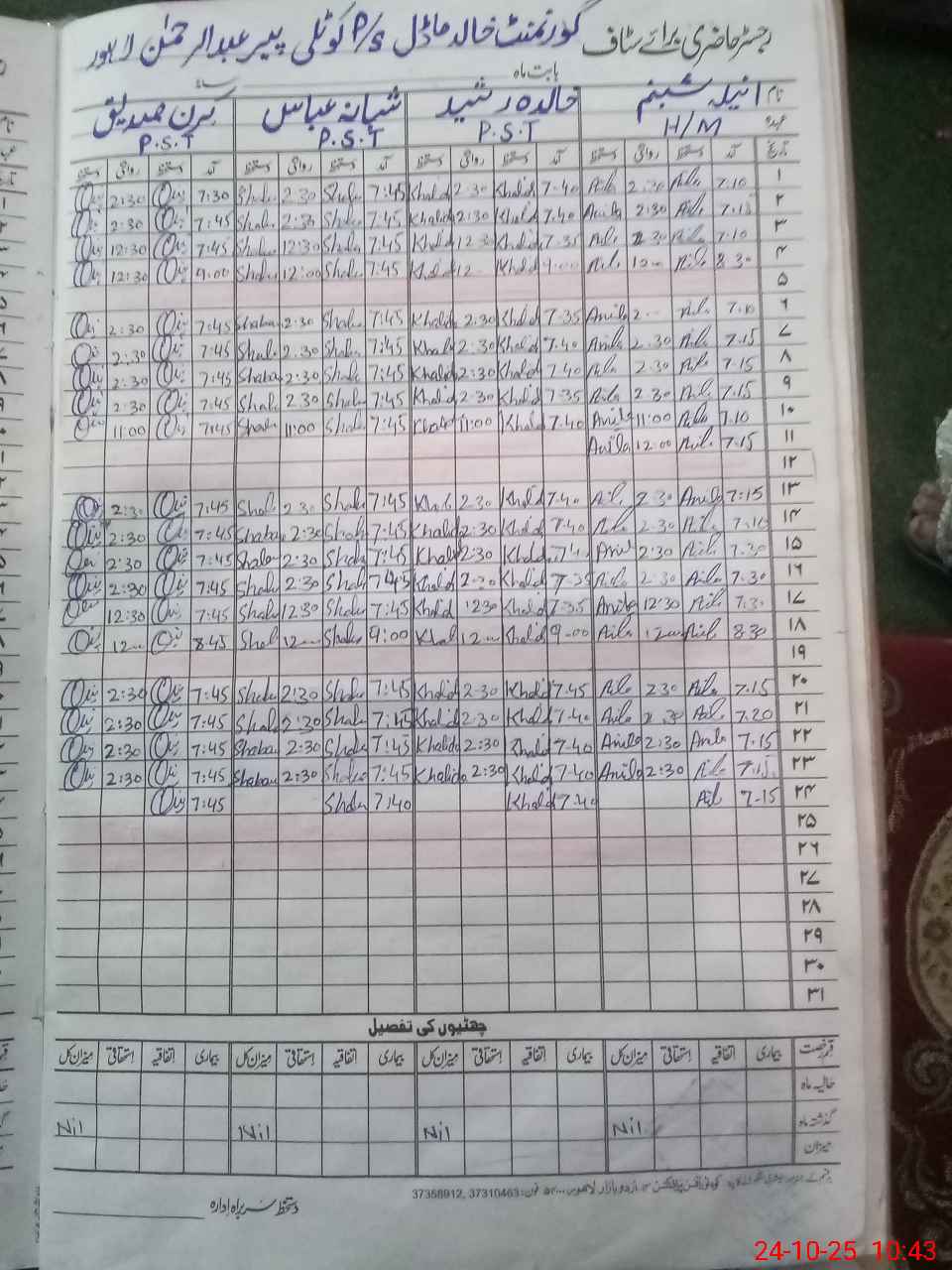 | Remarks (Use Separate Page if Required): 1 Ghulam Murtaza Sweeper the only sinlge sweeper of school on stopgap duty at Dy DEO M EE Tehsil Shalimar wef 26 July 2025 to till further order 2 Class Three and Five are being managed in veranda of school due to shortage of classrooms | |||||