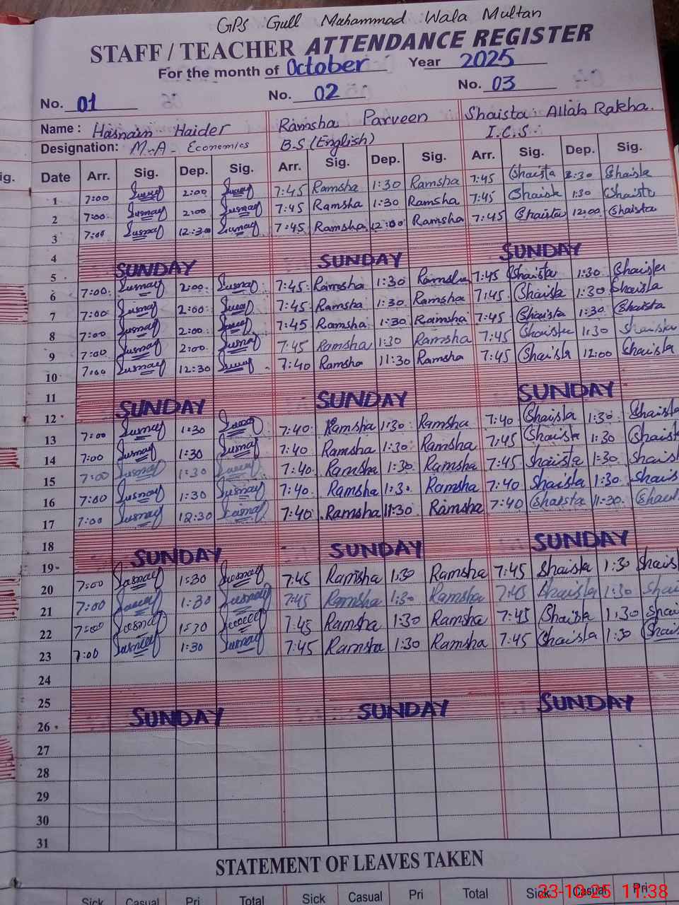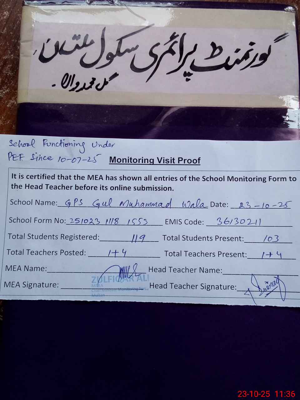 | EMIS Code: 36130211 | Name of School: GPS GUL MUHAMMAD WALA MULTAN | |||