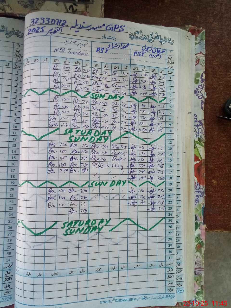 | CNIC | Full Name | Designation | R/C | Absence During Last Calender Month |