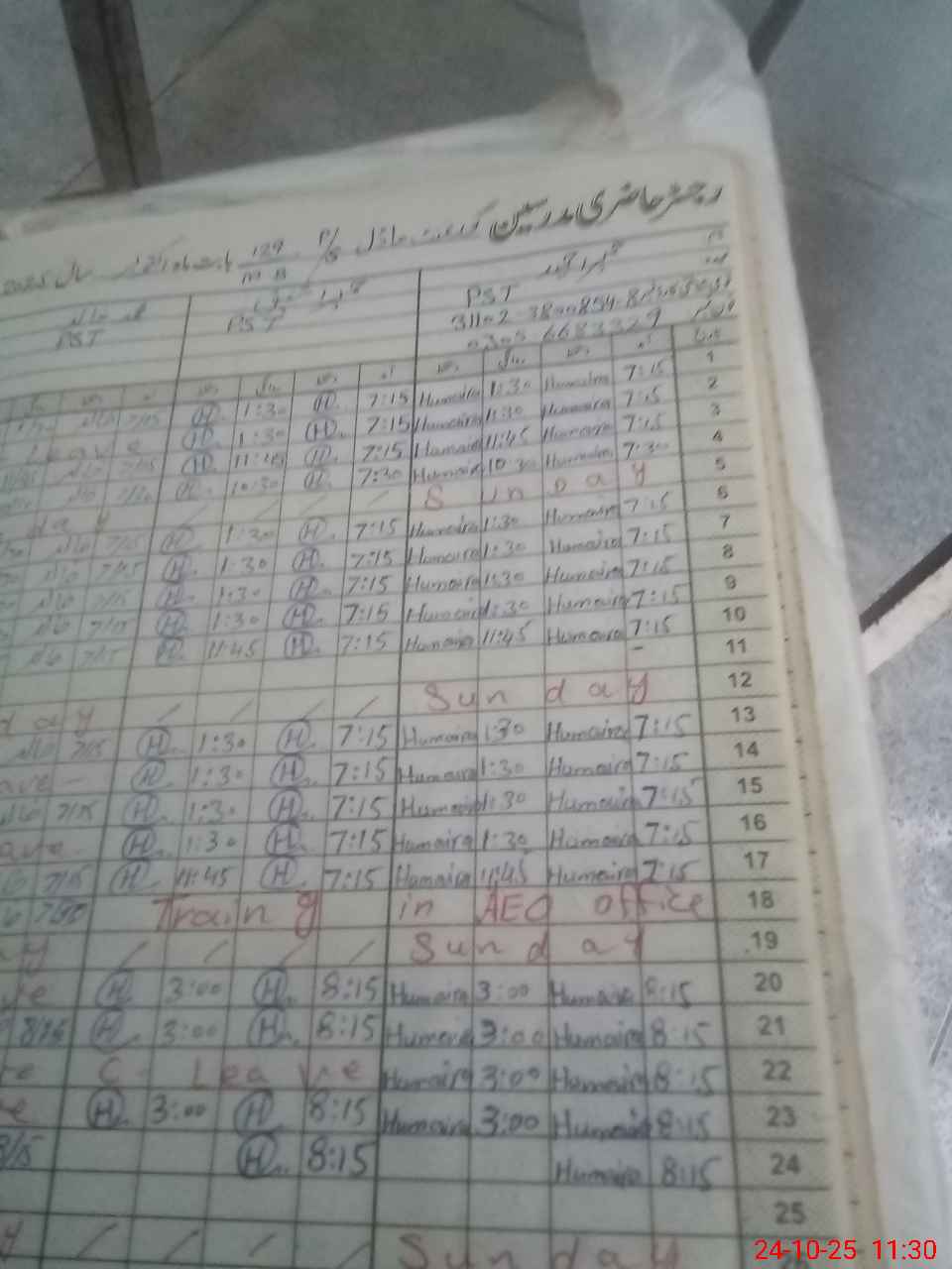 | Name: HU**** HA**** Designation: (School Headmaster's/Headmistress's) PST Phone/Cell Number: 03**** |