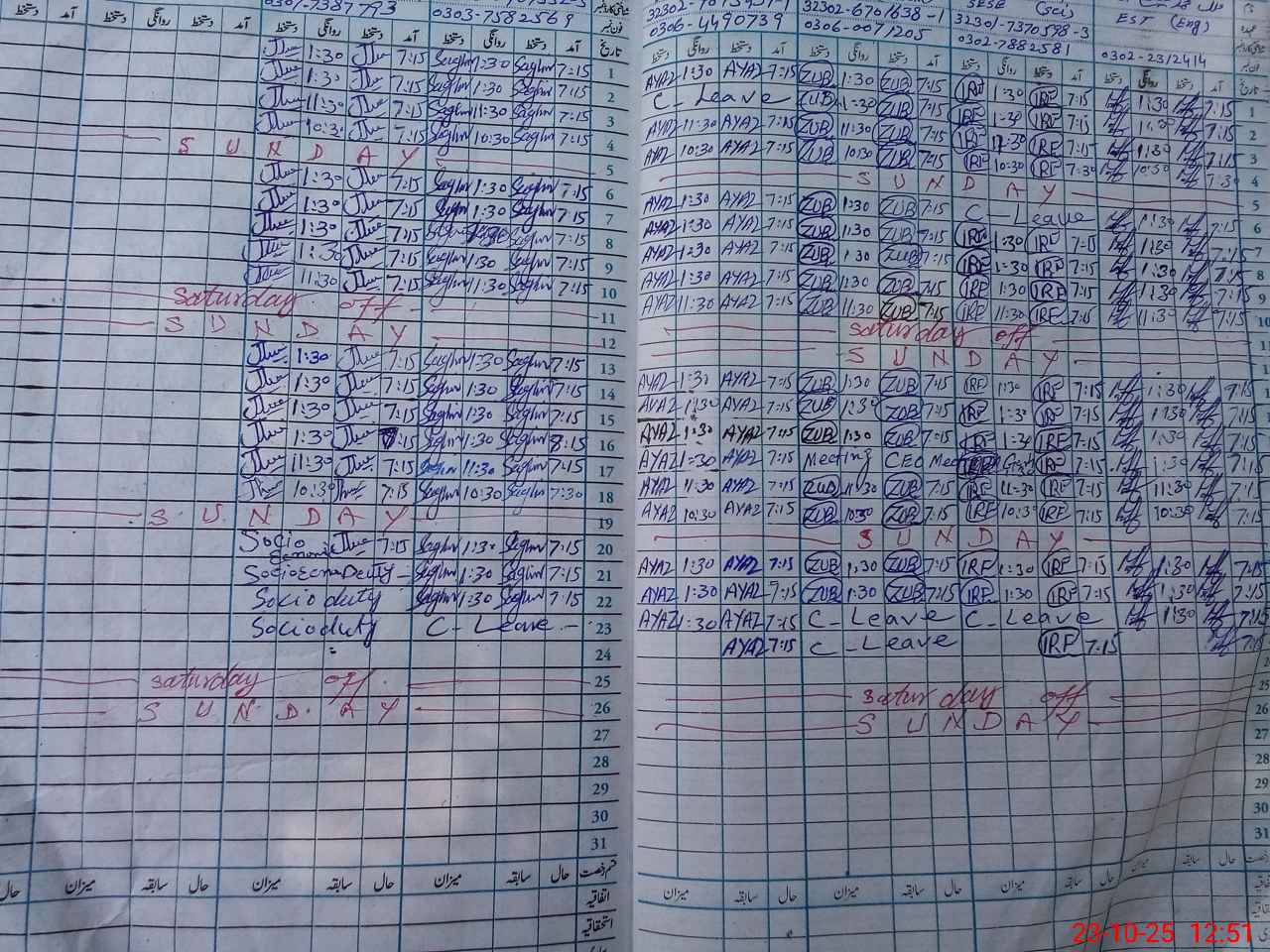 | Leave | Duty | Absent | Maternity | Medical | Ex- Pak |