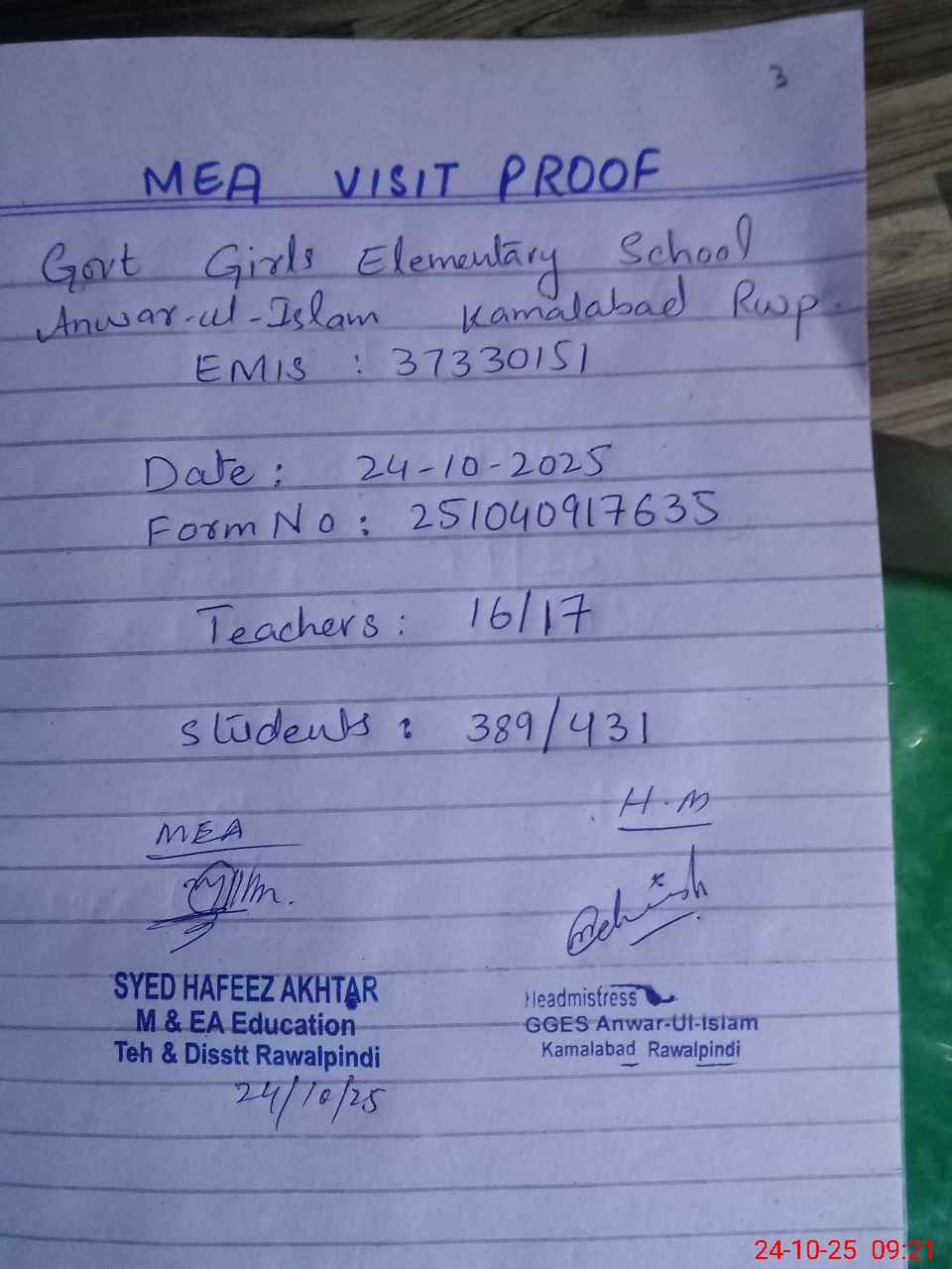 | EMIS Code: 37330151 | Name of School: GGES ANWAR UL ISLAM KAMALABAD | |||