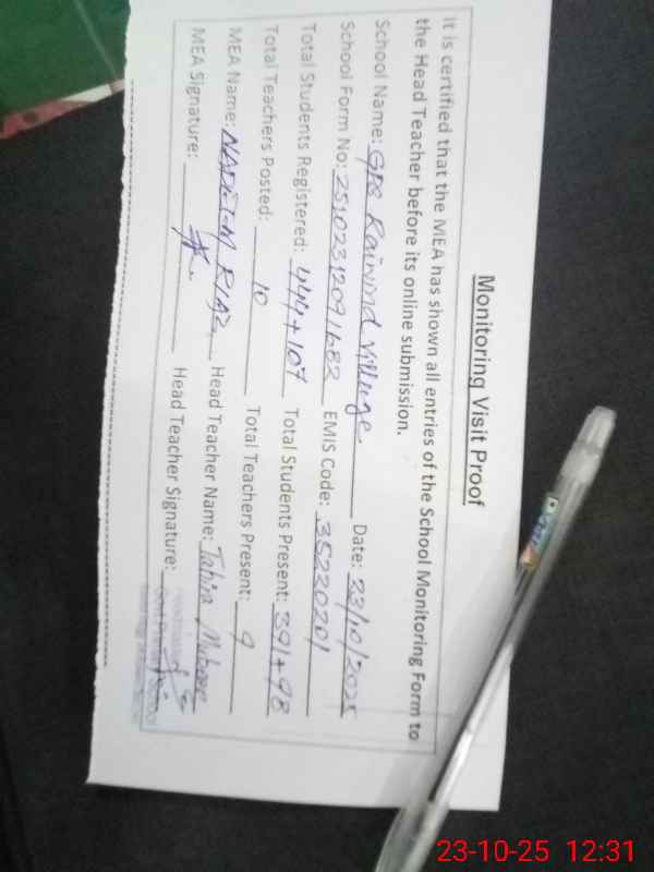 | Attendance Register | Head Teacher | MEA with School | Visit Proof |